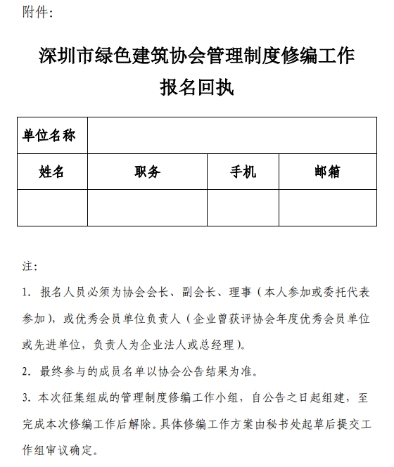 深圳市綠色建筑協(xié)會管理制度修編工作參編邀請函