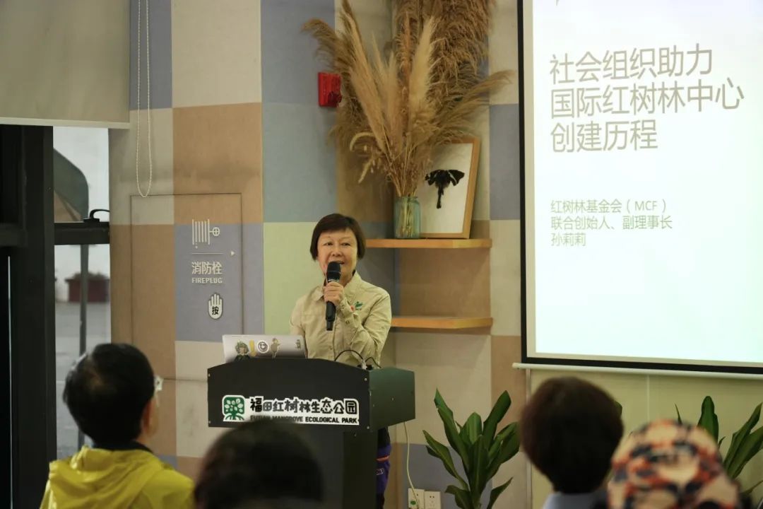 紅樹林基金會(huì)(MCF)聯(lián)合創(chuàng)始人、副理事長(zhǎng),廣東省三八紅旗手標(biāo)兵孫莉莉同志進(jìn)行了題為“社會(huì)組織助力國(guó)際紅樹林中心創(chuàng)建歷程”的主題分享,向參與活動(dòng)的各組織代表們講述紅樹林基金會(huì)的探索經(jīng)驗(yàn),以及如何從深圳走向全國(guó)、邁上國(guó)際舞臺(tái),最終助力國(guó)際紅樹林中心落戶深圳的故事。