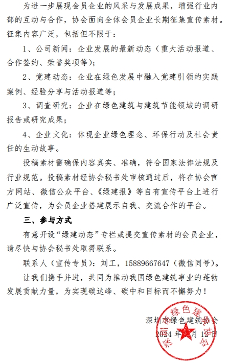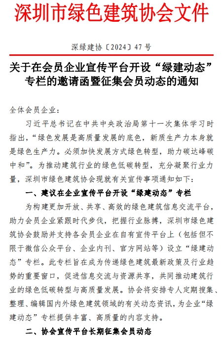 附件:關(guān)于在會員企業(yè)宣傳平臺開設(shè)“綠建動態(tài)”專欄的邀請函暨征集會員動態(tài)的通知