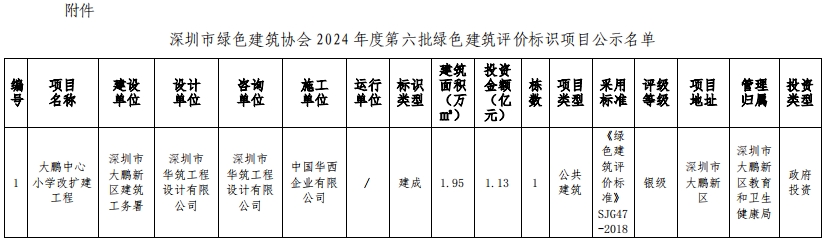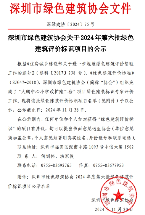 深圳市綠色建筑協(xié)會(huì)關(guān)于2024年第六批綠色建筑評(píng)價(jià)標(biāo)識(shí)項(xiàng)目的公示