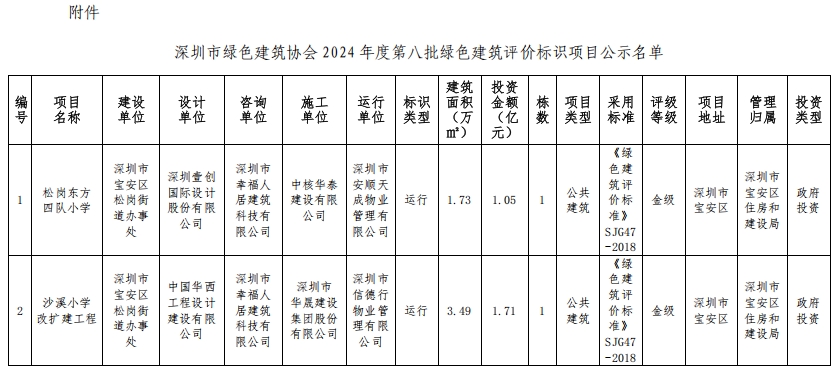深圳市綠色建筑協(xié)會(huì)關(guān)于2024年第八批綠色建筑評(píng)價(jià)標(biāo)識(shí)項(xiàng)目的公示