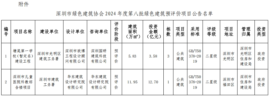 深圳市綠色建筑協(xié)會關(guān)于2024年第八批綠色建筑預(yù)評價項目的公告