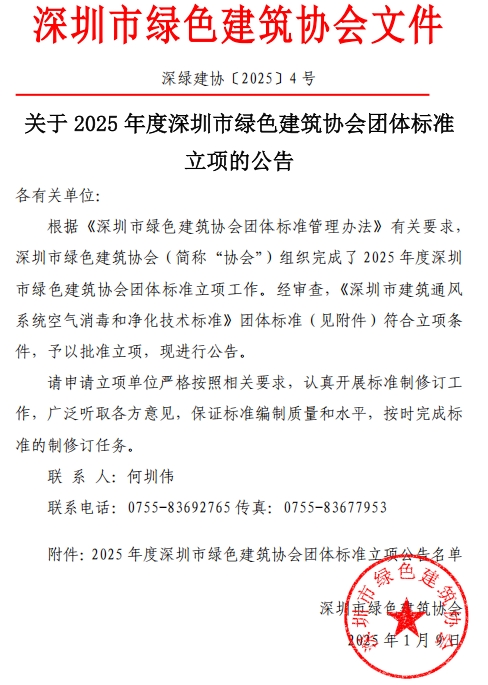 關(guān)于2025年度深圳市綠色建筑協(xié)會(huì)團(tuán)體標(biāo)準(zhǔn)立項(xiàng)的公告