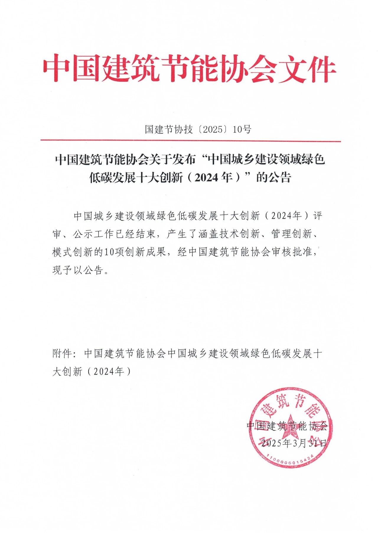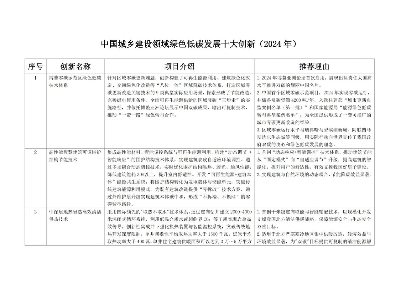 近日,中國建筑節(jié)能協(xié)會(huì)印發(fā)公告,發(fā)布“中國城鄉(xiāng)建設(shè)領(lǐng)域綠色低碳發(fā)展十大創(chuàng)新(2024年)”。據(jù)公告,經(jīng)評(píng)審、公示,產(chǎn)生涵蓋技術(shù)創(chuàng)新、管理創(chuàng)新、模式創(chuàng)新的10項(xiàng)創(chuàng)新成果。以下為公告全文及十大創(chuàng)新成果介紹。