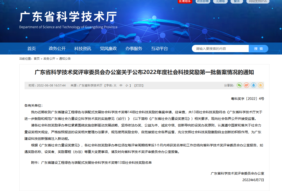 2022年度社會(huì)科技獎(jiǎng)勵(lì)第一批備案情況的通知https://gdstc.gd.gov.cn/zwgk_n/tzgg/content/post_3946454.html