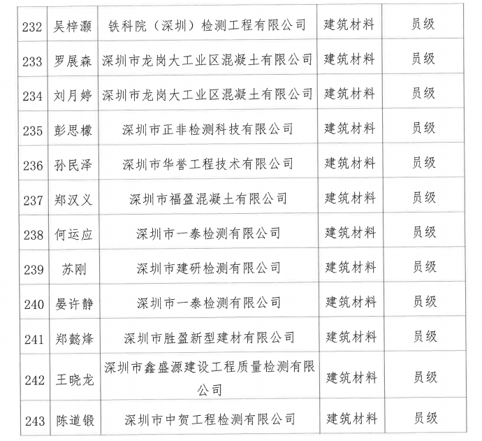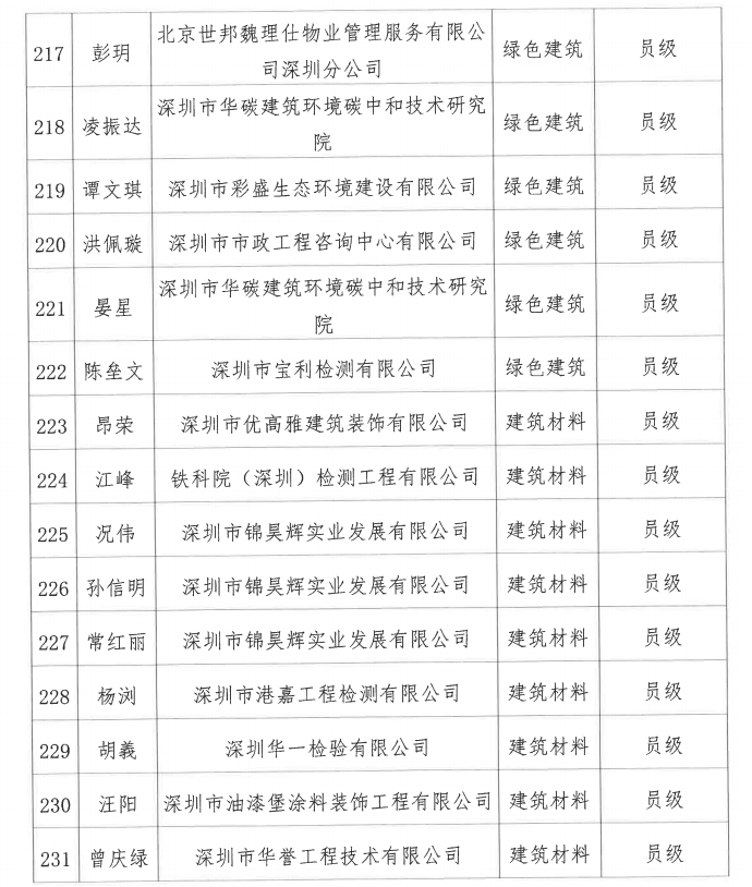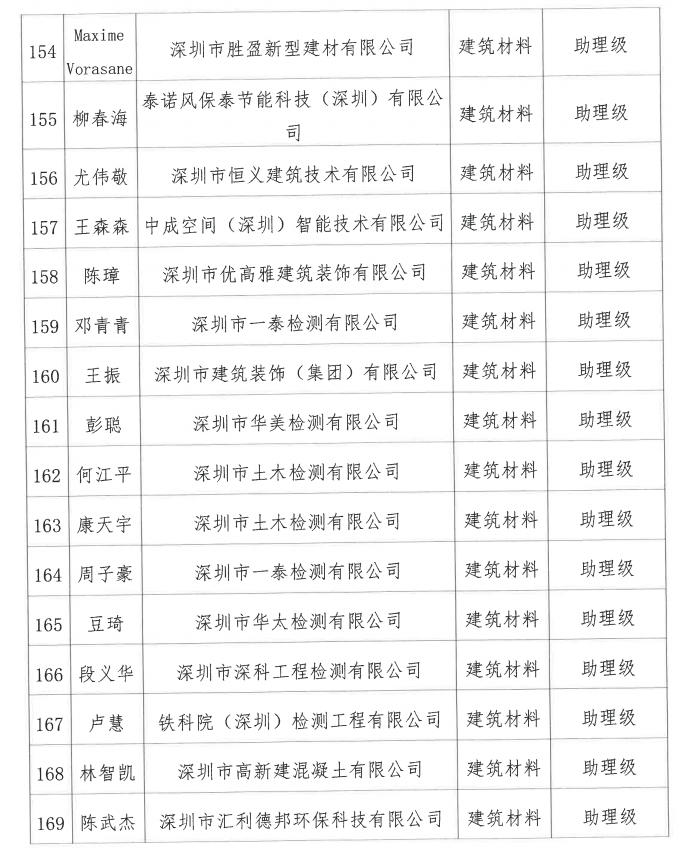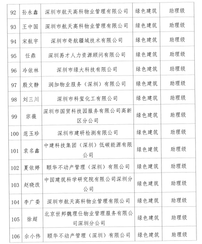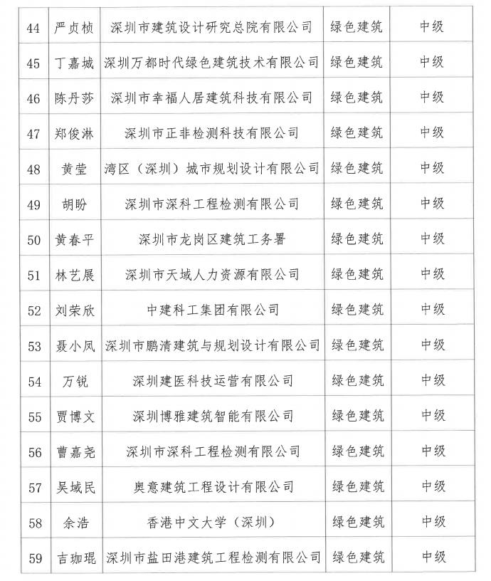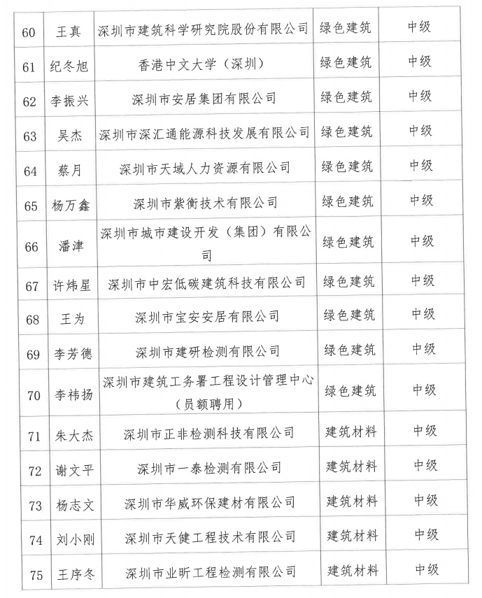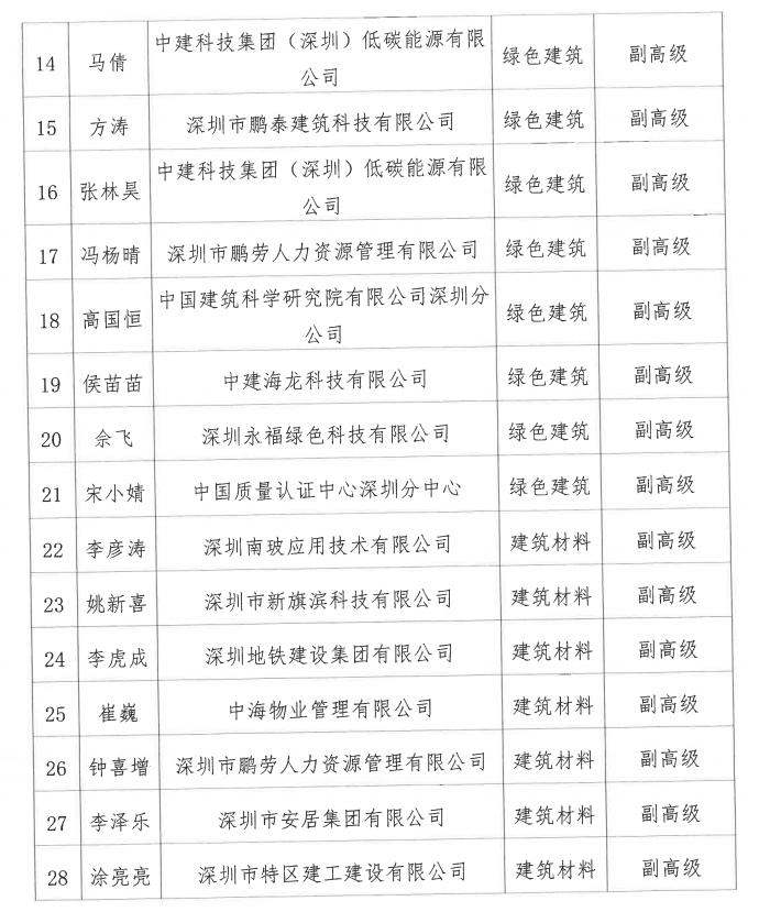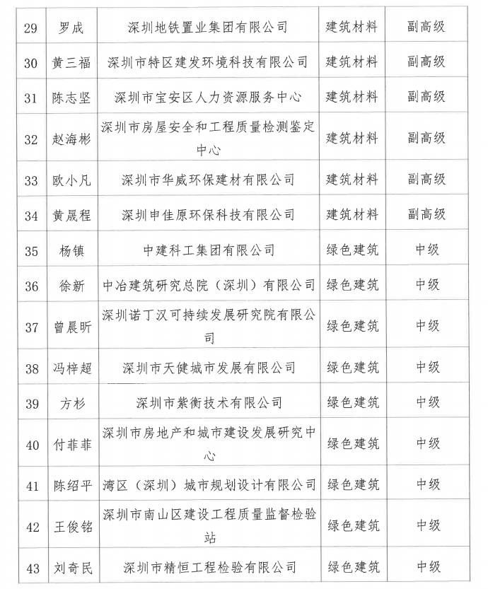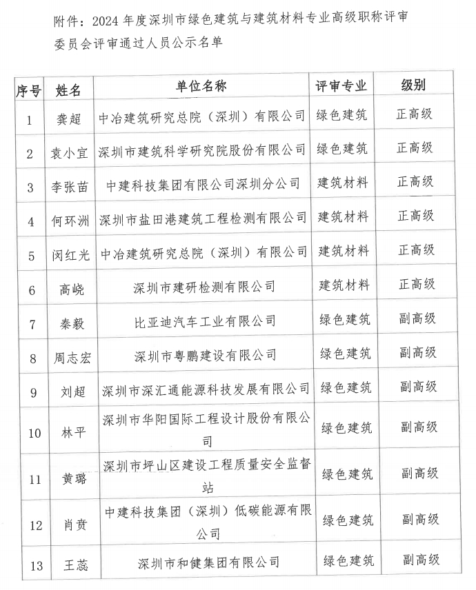 2024年度深圳市綠色建筑與建筑材料專業(yè)高級職稱評審委員會(huì)通過人員公示