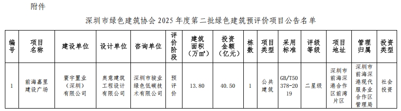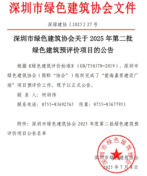 深圳市綠色建筑協(xié)會(huì)關(guān)于2025年第二批綠色建筑預(yù)評(píng)價(jià)項(xiàng)目的公告