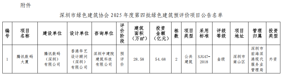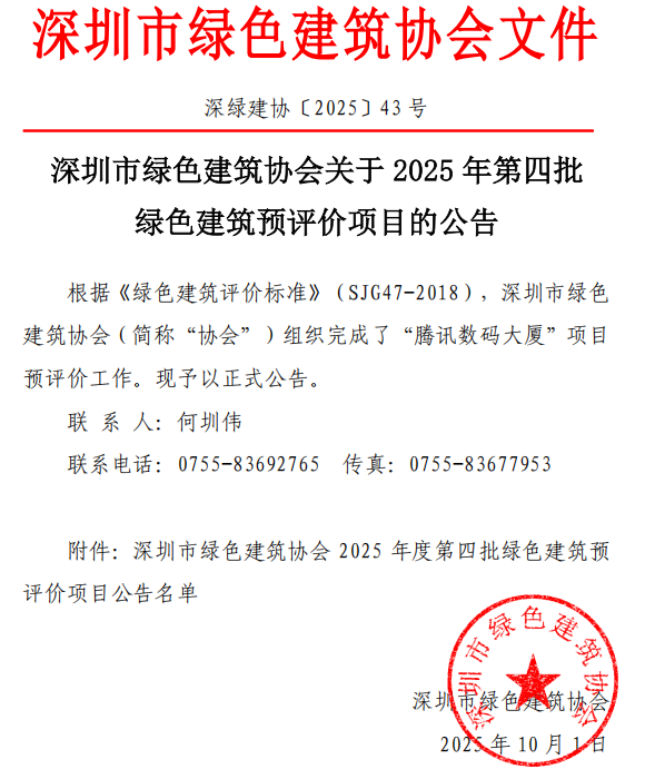 深圳市綠色建筑協(xié)會(huì)關(guān)于2025年第四批綠色建筑預(yù)評價(jià)項(xiàng)目的公告