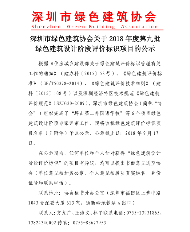 關于2018年度第九批綠色建筑評價標識項目的公示